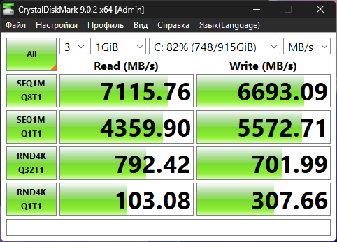 Для тестирования скорости в Windows подойдёт бесплатная утилита CrystalDiskMark: она покажет и последовательные, и случайные скорости чтения/записи, позволяя наглядно сравнить RAM-диск с обычным SSD.