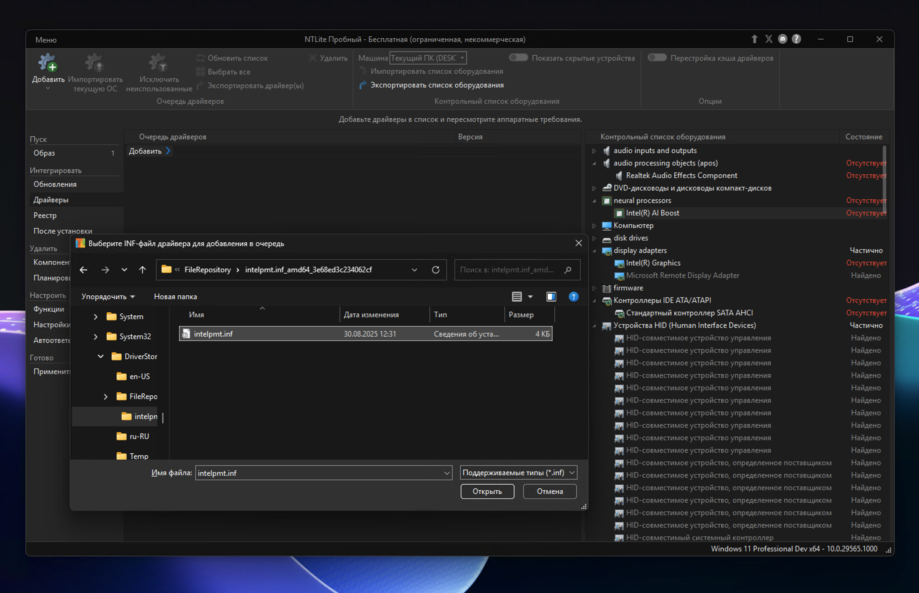 Последние обновления NTLite, выпущенные в этом месяце, включают ряд значимых улучшений. В частности, добавлена поддержка большего числа потоков, благодаря чему извлечение образов выполняется заметно быстрее. Это особенно актуально на современных процессорах с многопоточной архитектурой. Также появилась функция управления ИИ-компонентами для образов Windows 11, версия 25H2, которая позволяет уменьшить размер установки за счет удаления соответствующих компонентов. Также улучшена работа с драйверами.