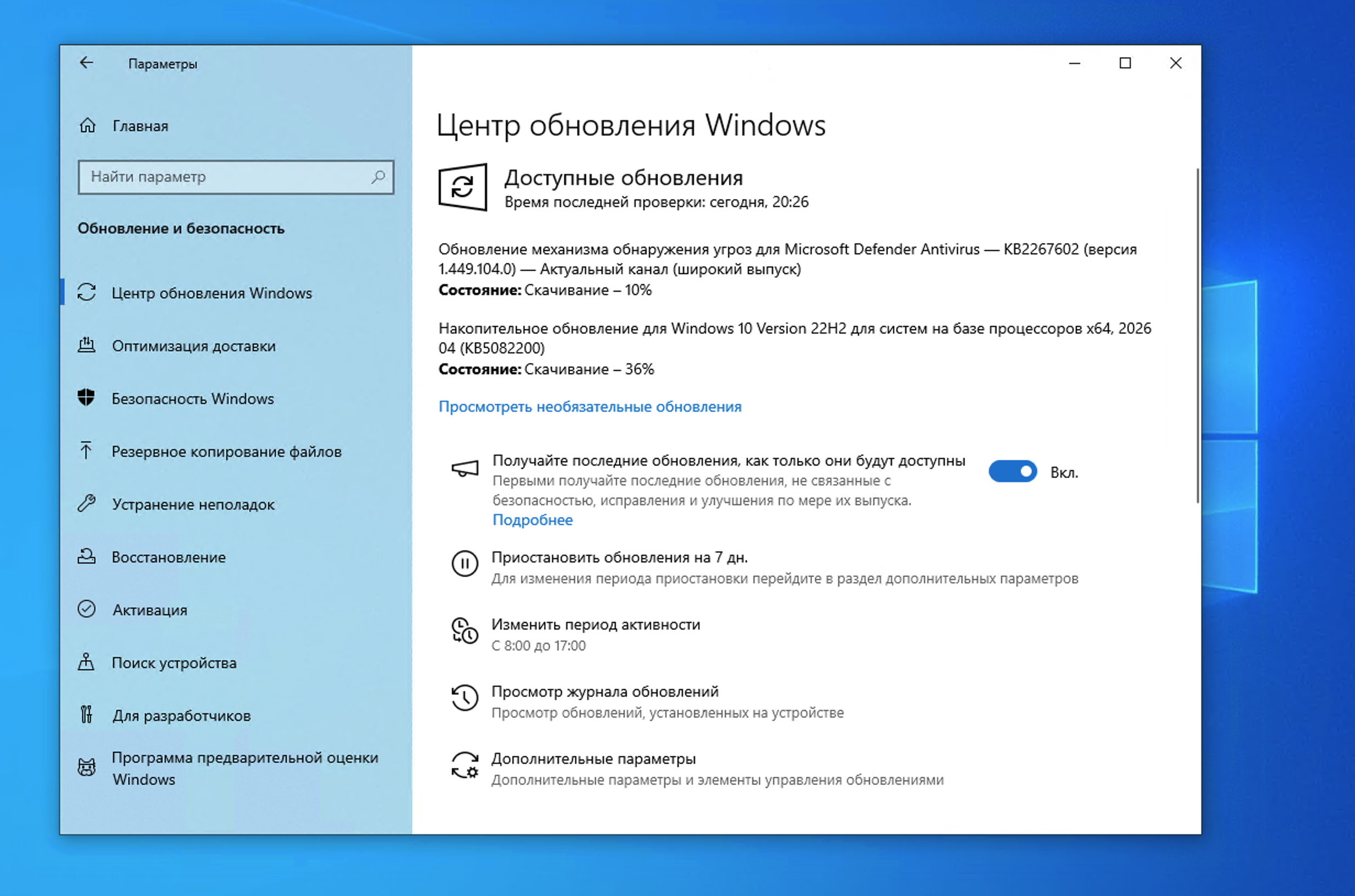 • Обновление KB5082200 (Build 19045.7184) для Windows 10, версия 22H2 (ESU)
