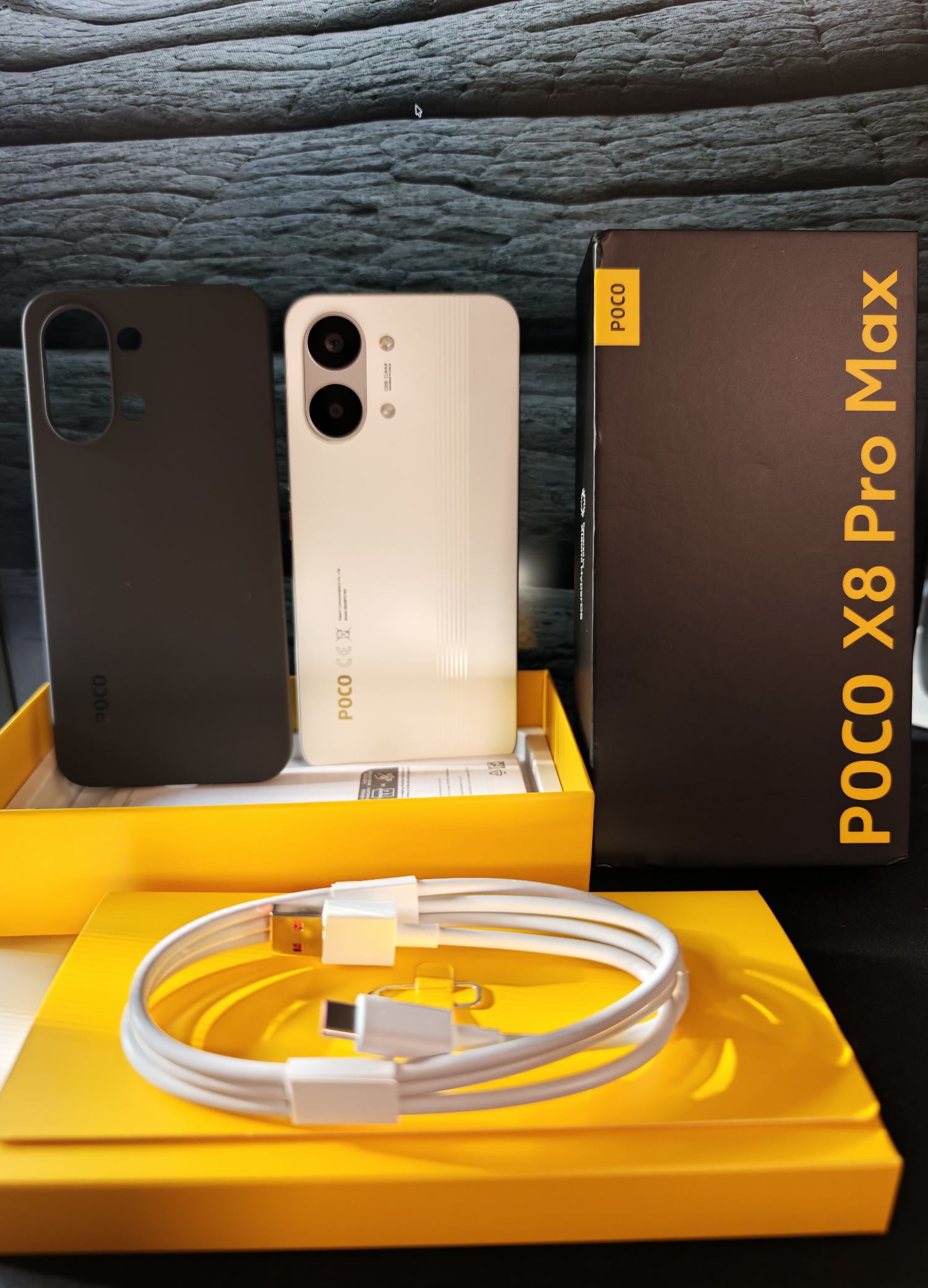 POCO X8 Pro Max поставляется в фирменной коробке с оранжево-чёрным оформлением. В российской комплектации доступно фирменное зарядное устройство Xiaomi на 100 Вт.