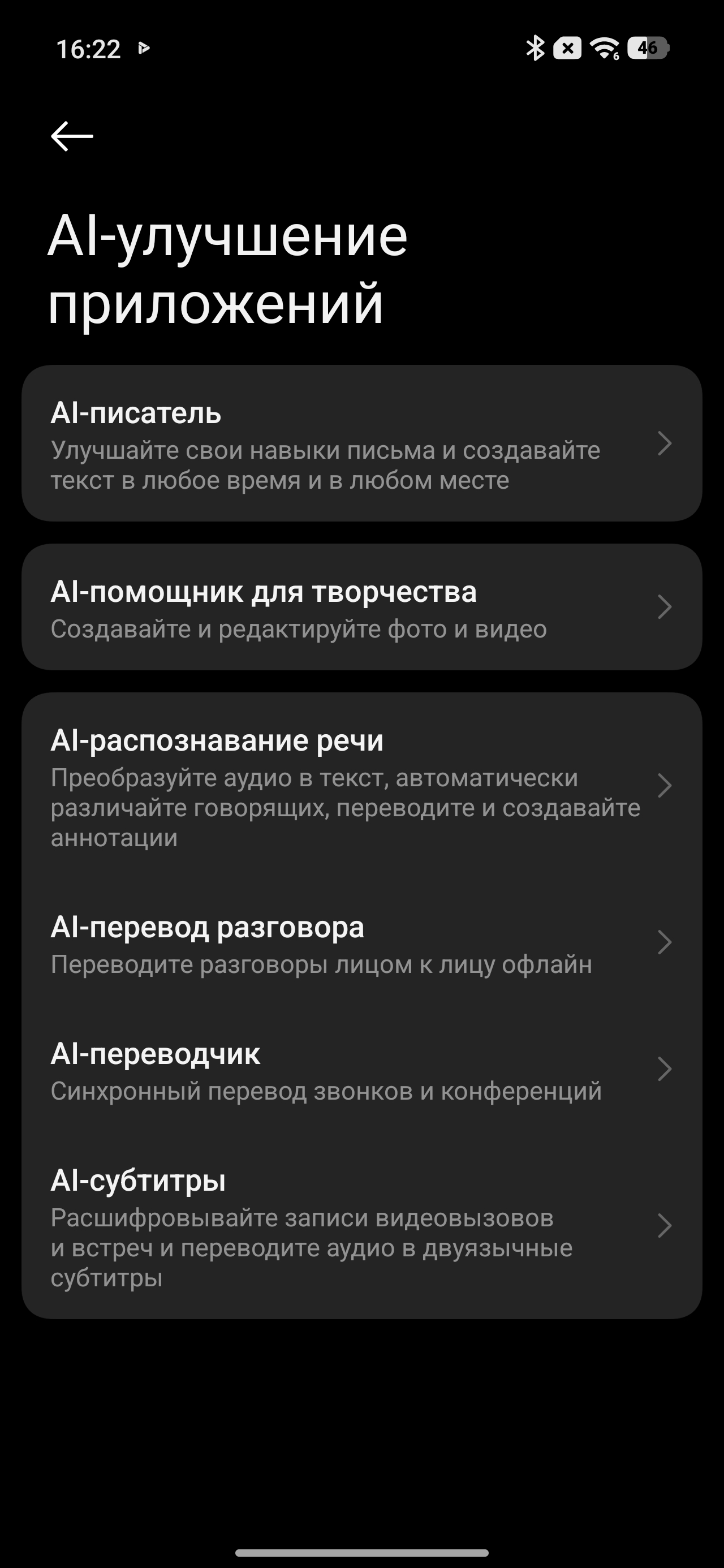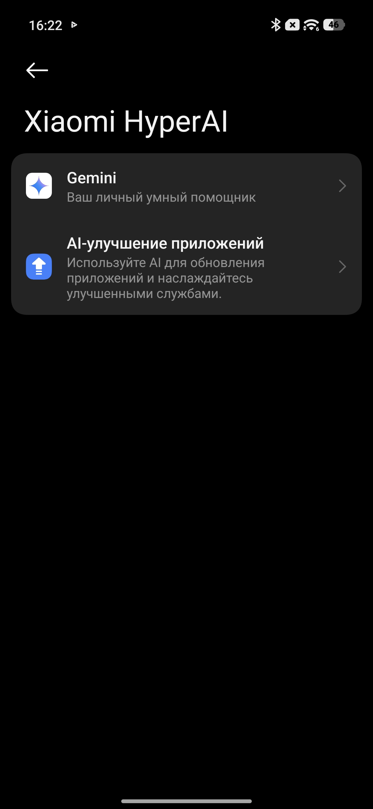 В настройках HyperOS 3 появился отдельный раздел «Xiaomi HyperAI» со следующими функциями в «AI-улучшение приложений»: