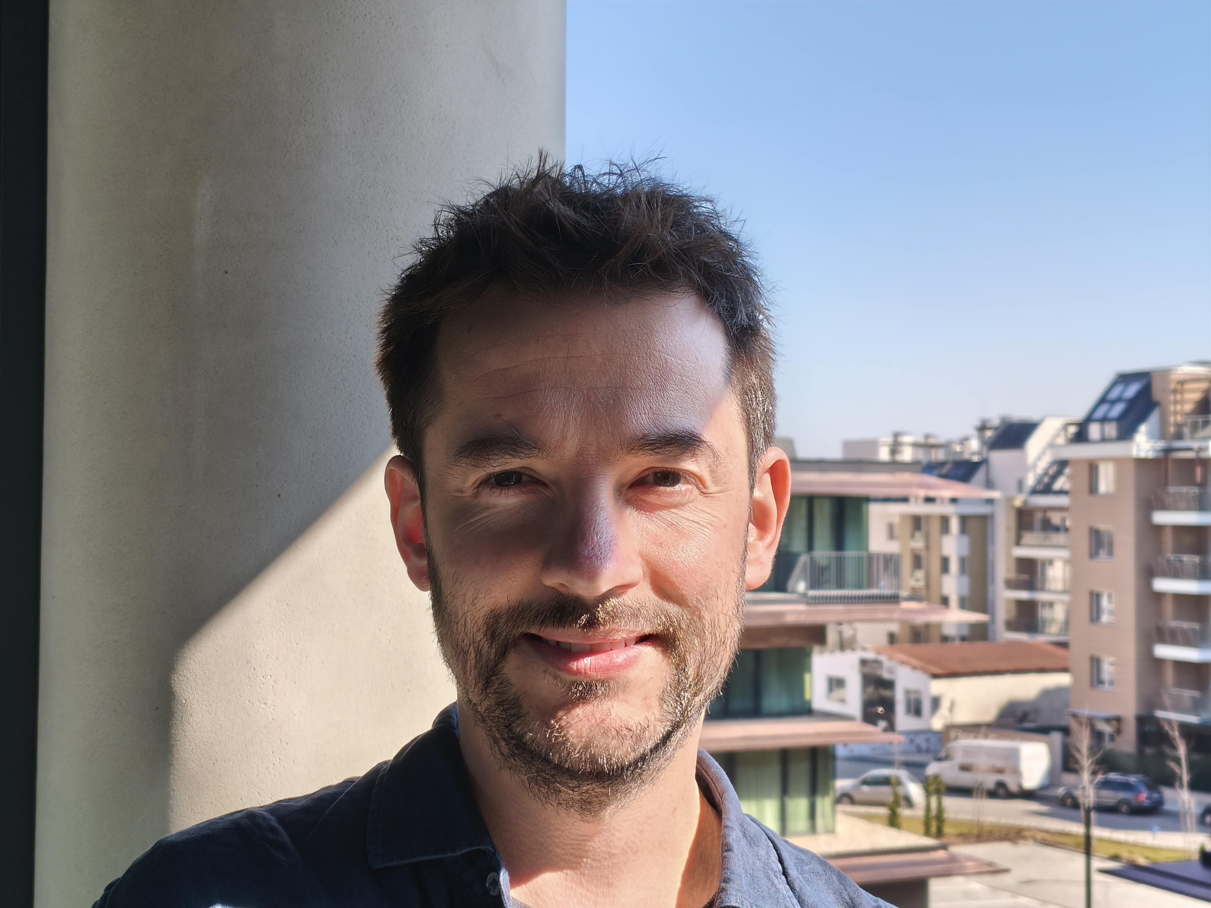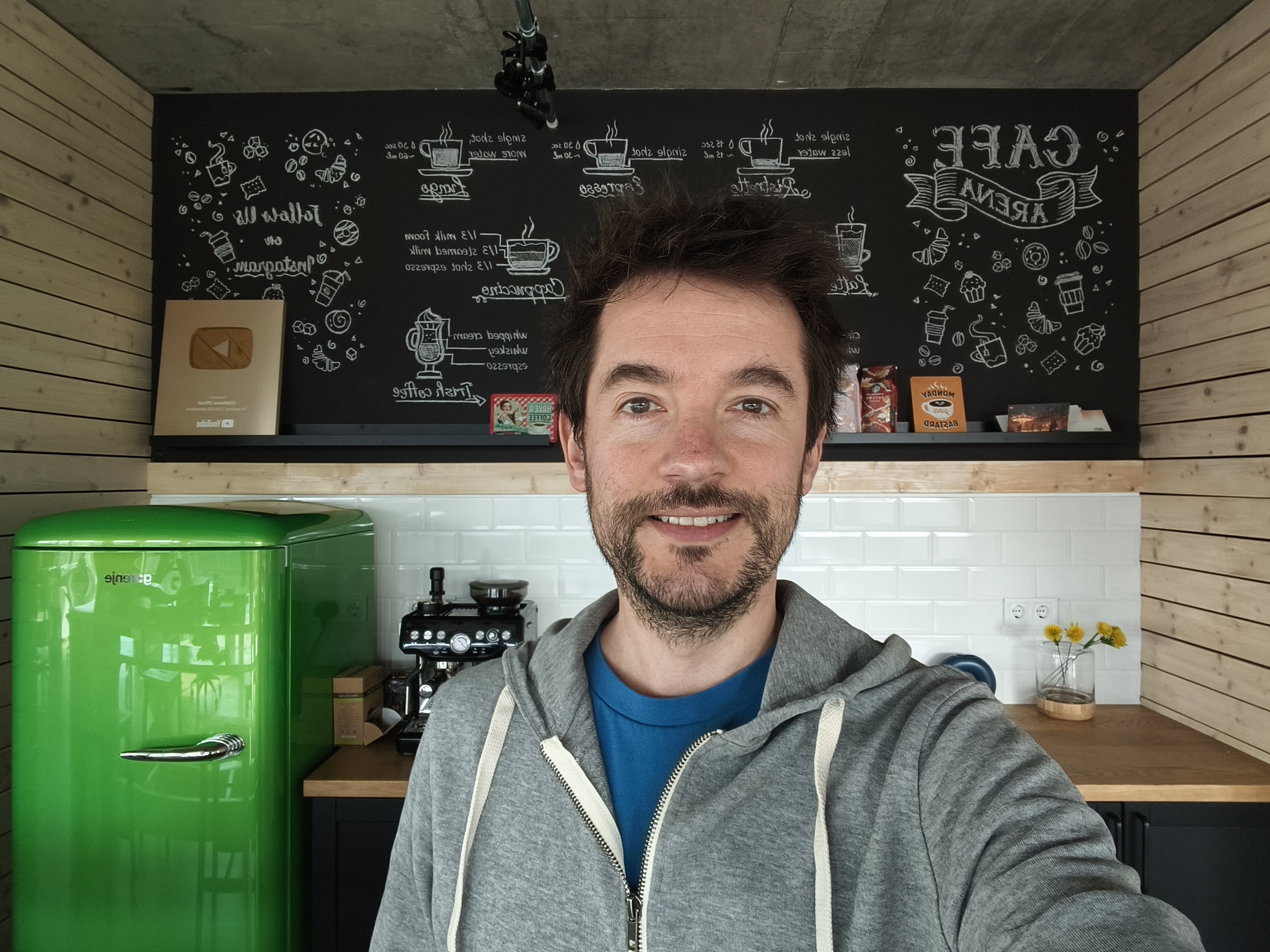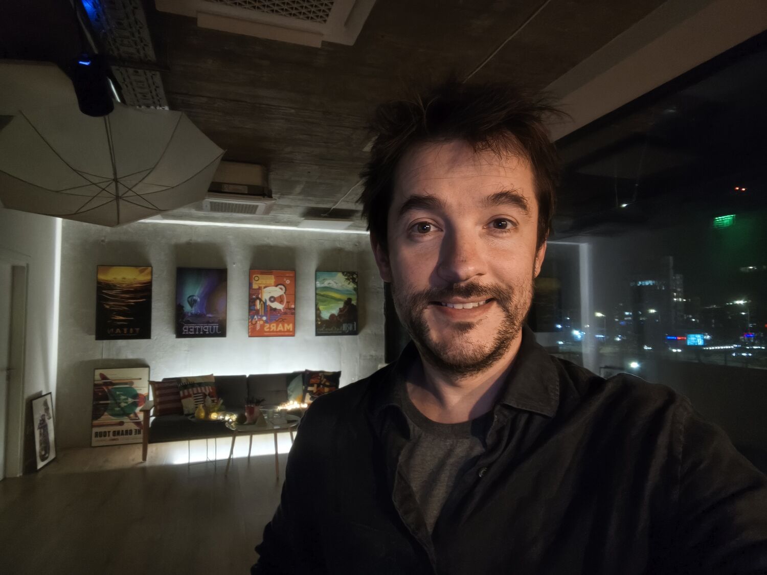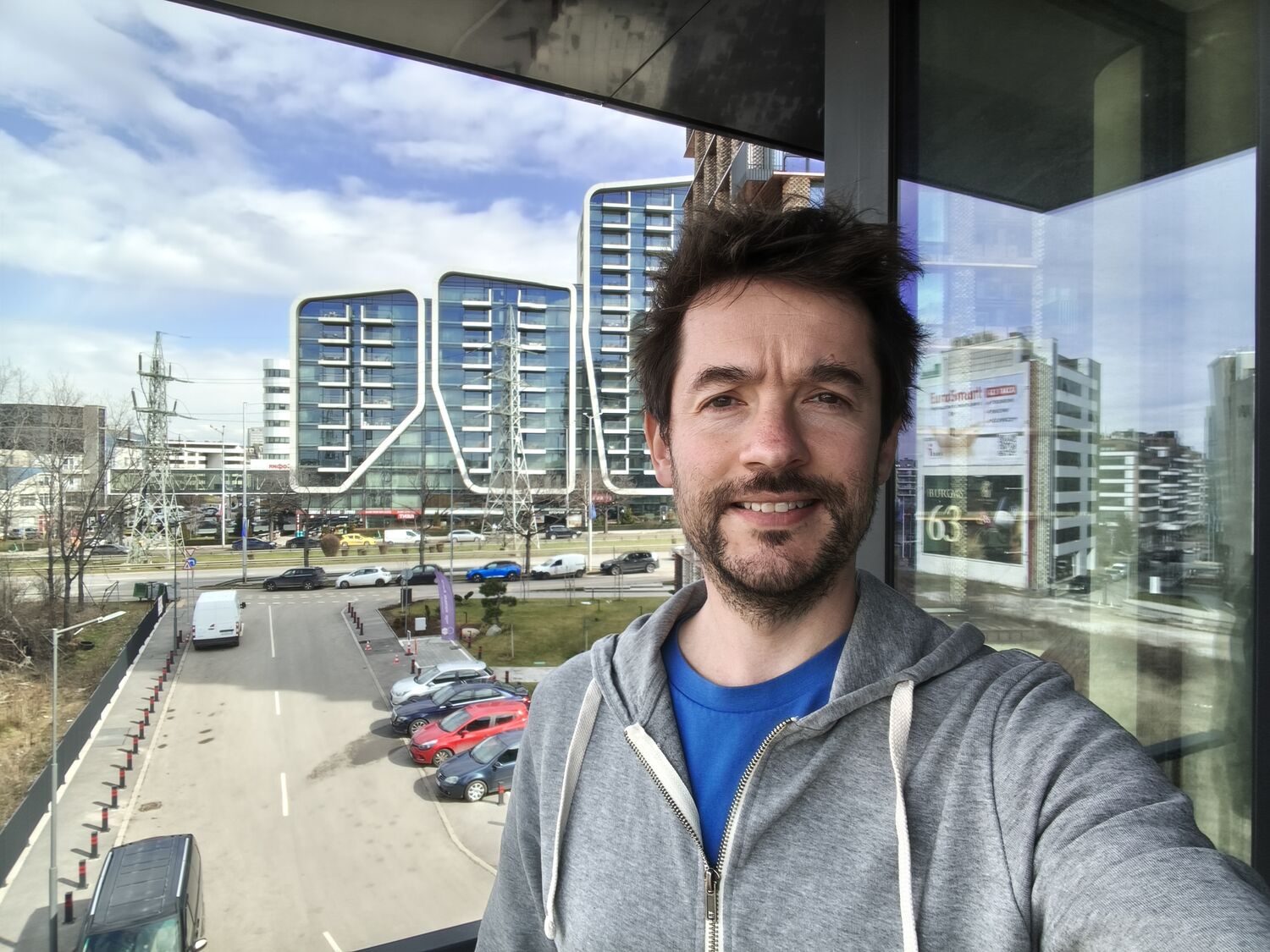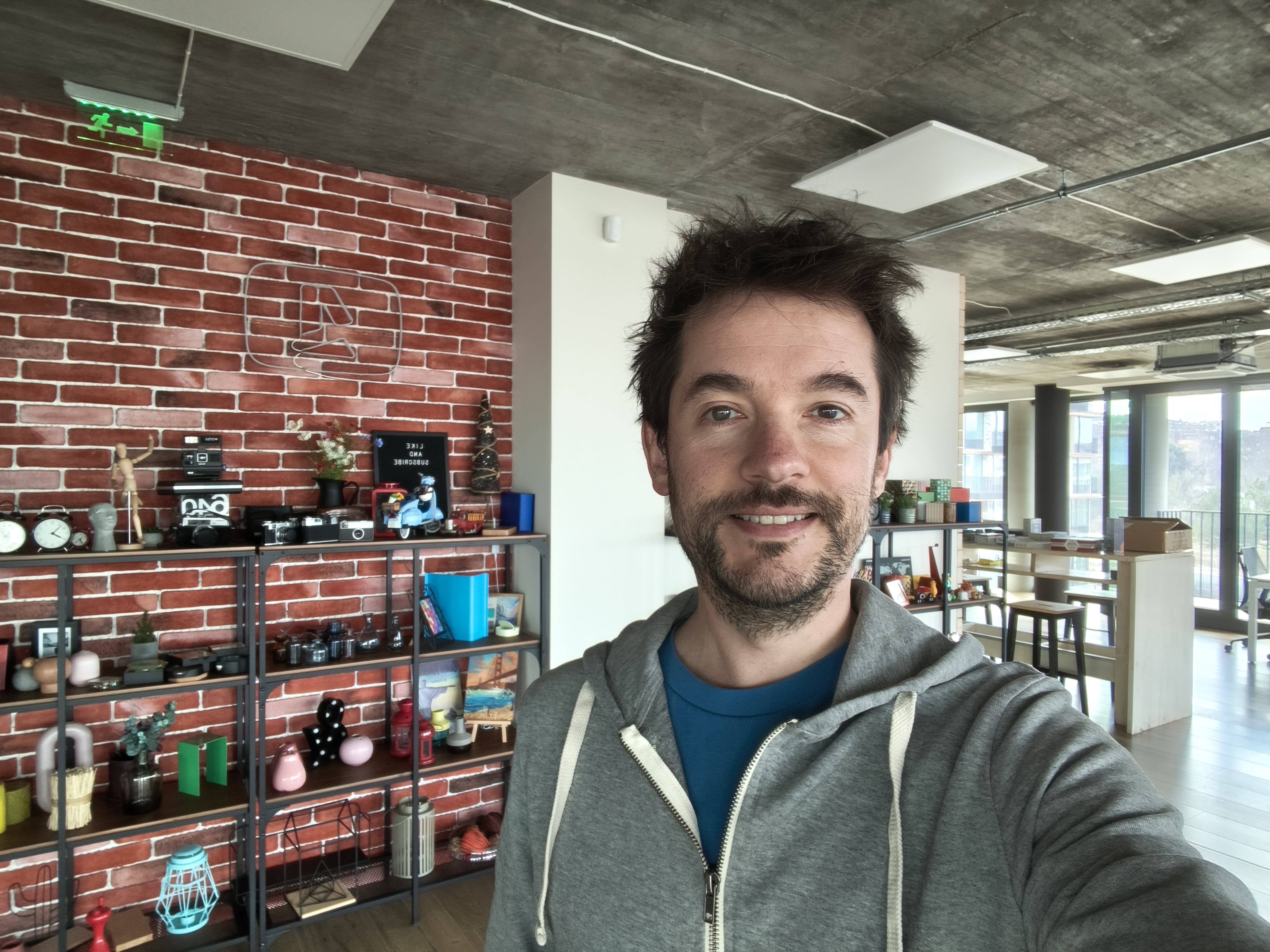 Фронтальная камера 20 МП с более широким объективом (21 мм против 25 мм у прошлых моделей) — заметное улучшение. В кадр помещается больше фона и людей. Детализация адекватная для класса, тона кожи естественные, динамический диапазон широкий. Автофокуса нет, но фиксированный фокус настроен на типичную дистанцию селфи.