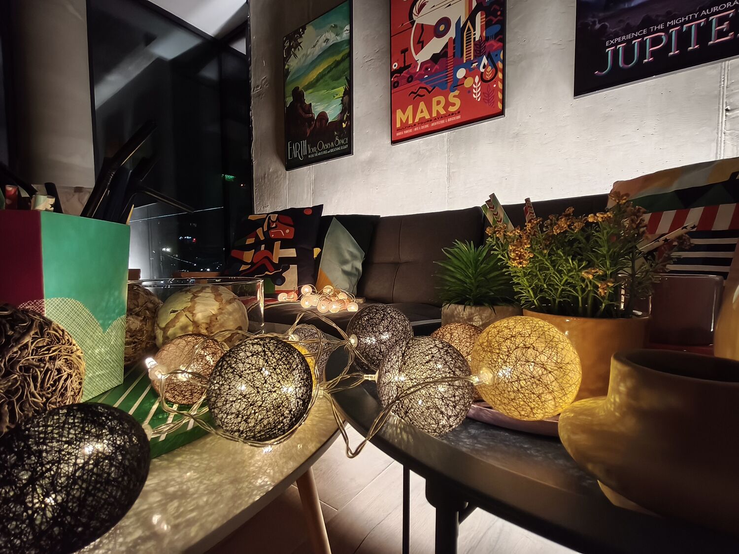 На задней панели — небольшой островок камеры с двумя объективами, обрамлёнными кольцами RGB-подсветки (Dynamic RGB lights). Каждое кольцо состоит из четырёх сегментов. Подсветка работает как индикатор уведомлений, таймер камеры, индикатор зарядки (красный — 0–20%, оранжевый — 20–50%, белый — выше 50%, зелёный — полный заряд) и как аудиовизуализатор при воспроизведении музыки.