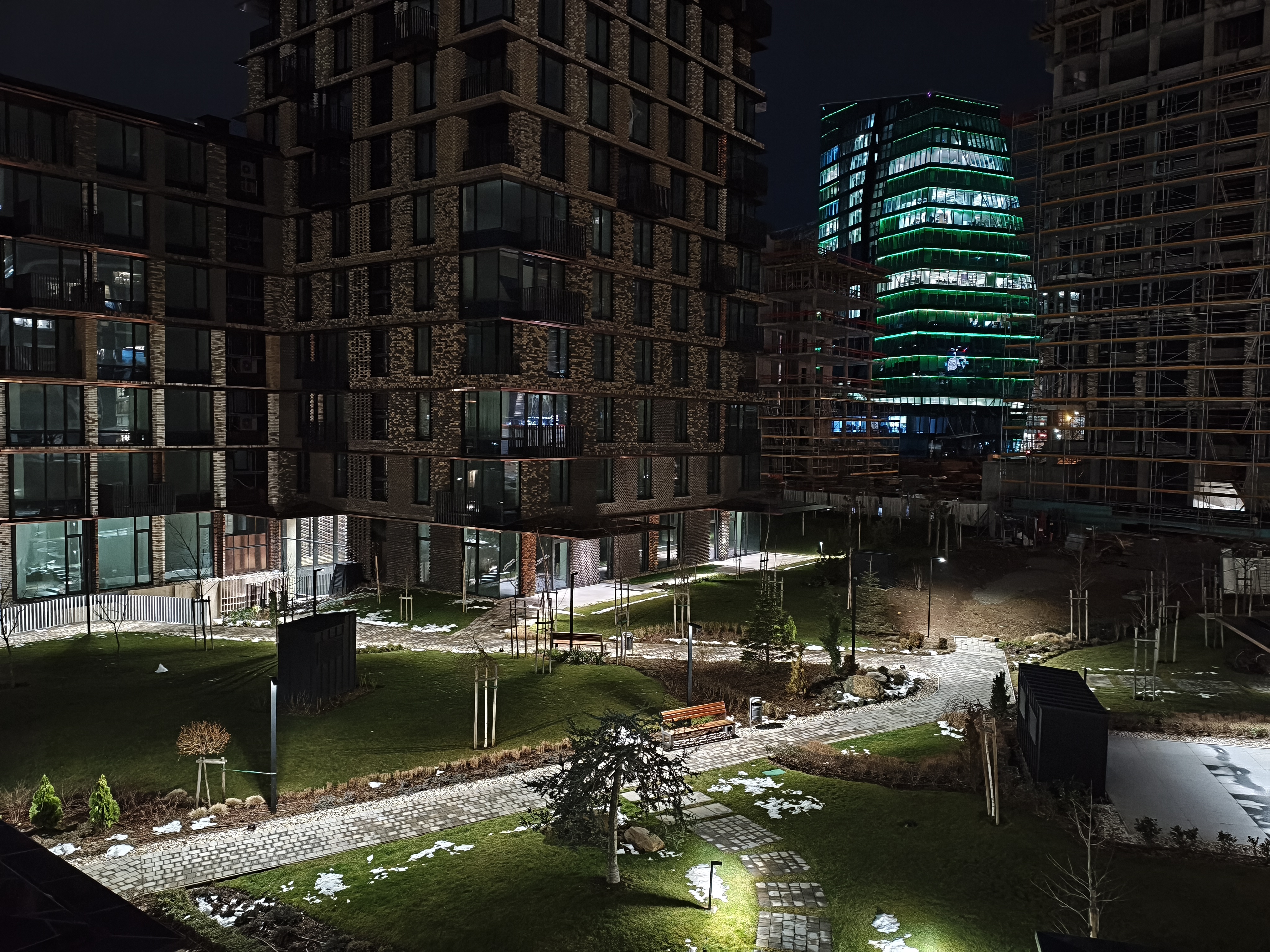 В темноте основная камера держит марку: контрастная картинка, корректный баланс белого, умеренный шум. Обработка добавляет резкость, что делает результат несколько «искусственным», но для ночной съёмки в этом классе — это один из лучших результатов.