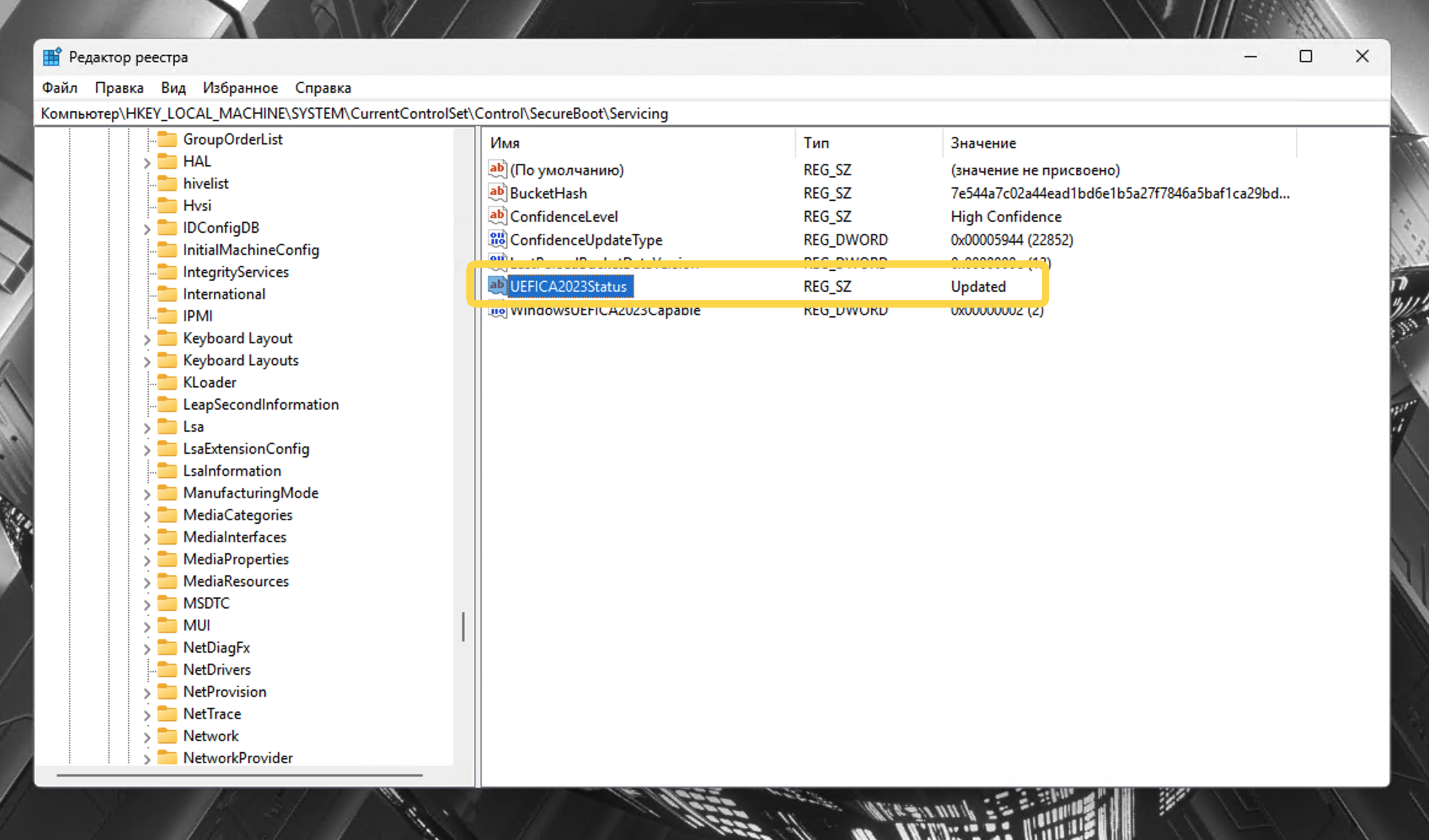 Параметр UEFICA2023Status со значением Updated означает, что всё применено успешно. InProgress — обновление ждёт перезагрузки или завершения запланированной задачи. Параметр UEFICA2023Error отсутствует при нормальной работе; если он появился и его значение отлично от нуля — возникла ошибка, расшифровку кодов даёт документация Microsoft по событиям Secure Boot.