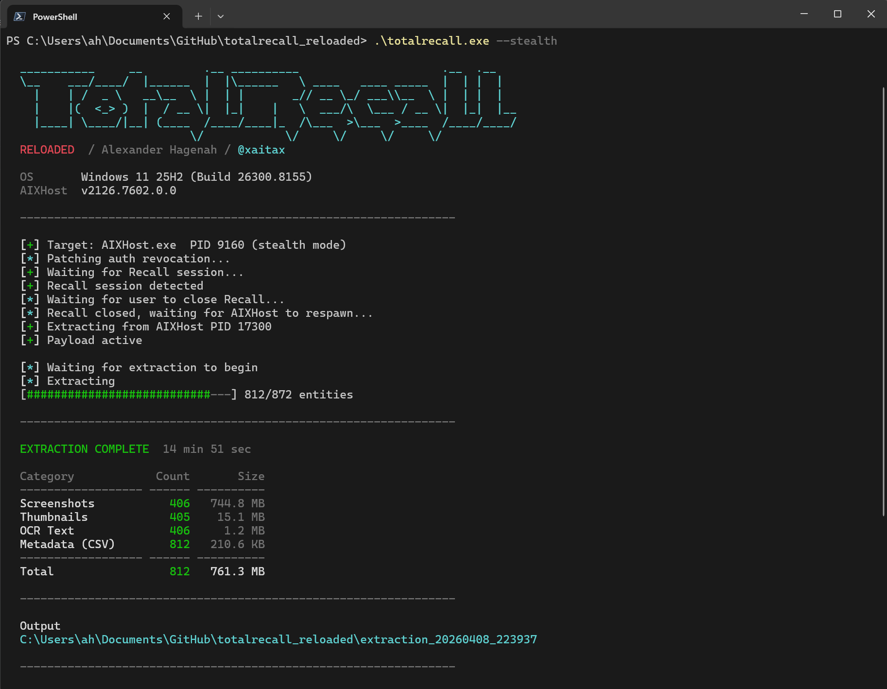 Новая версия TotalRecall использует процесс AIXHost.exe для получения всех снимков. По словам исследователя, «процесс, отвечающий за отображение таймлайна Recall, не имеет PPL, AppContainer и контроля целостности кода», что позволяет внедрять код и извлекать данные после аутентификации пользователя через Windows Hello.