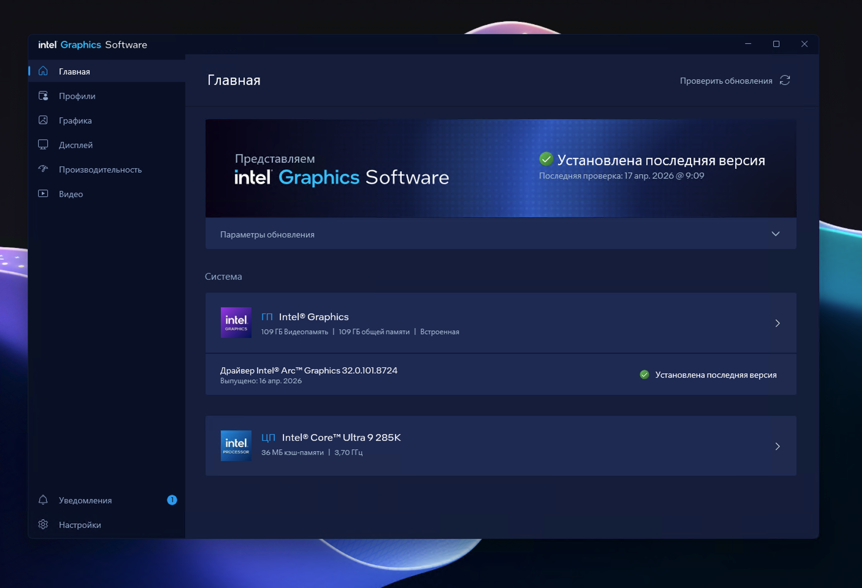 Обновление Intel Arc Graphics Driver версии 32.0.101.8724 Non-WHQL доступно для скачивания через Intel Graphics Software (если отключена опция «Обновления драйверов, сертифицированных WHQL» на главной в разделе Параметры обновления), Intel Driver & Support Assistant или с официального сайта Intel.com