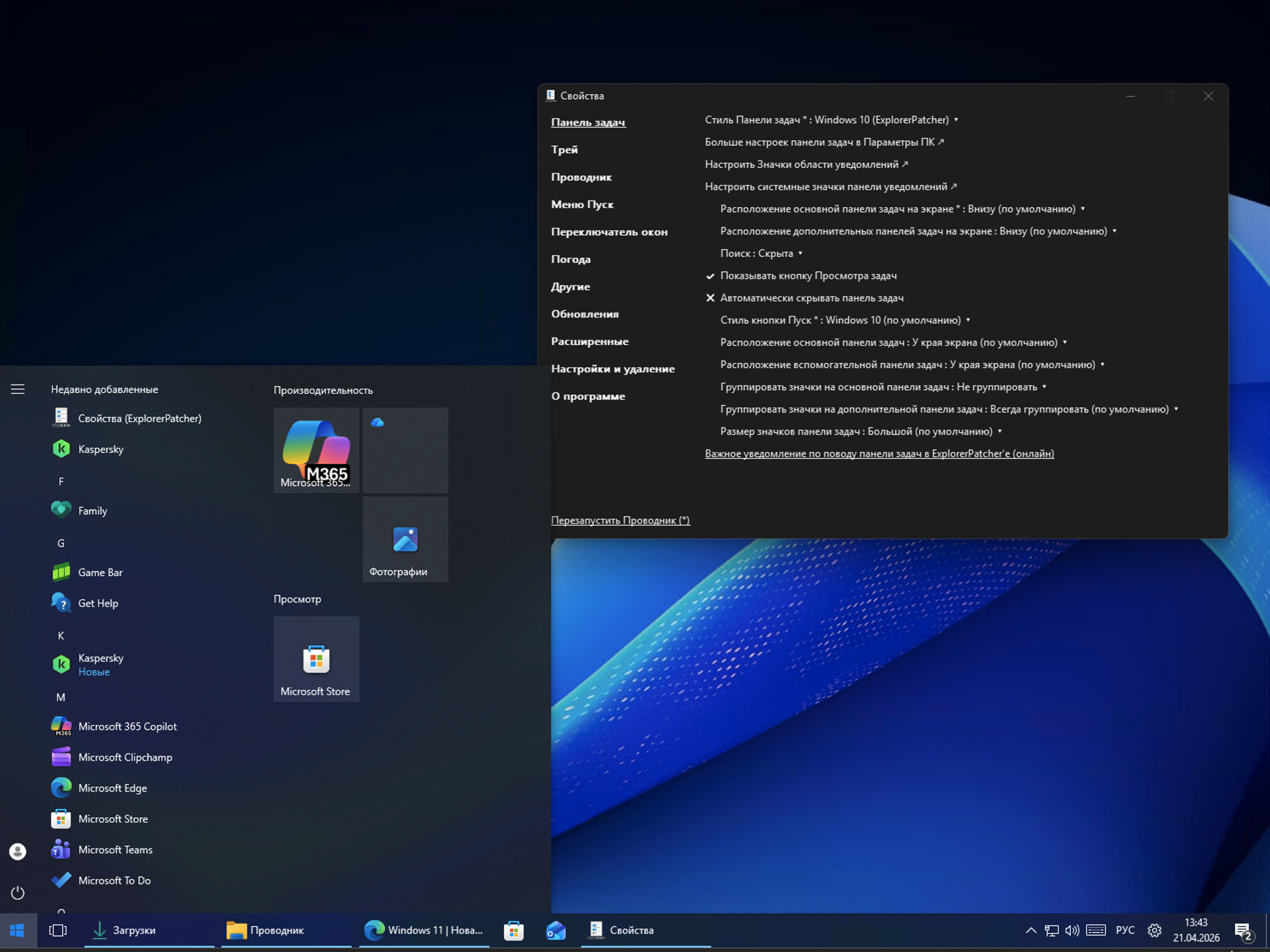 В целом ExplorerPatcher представляет собой легкий и удобный инструмент, позволяющий адаптировать отдельные элементы Windows 11 под более привычный формат без полной переработки ОС.