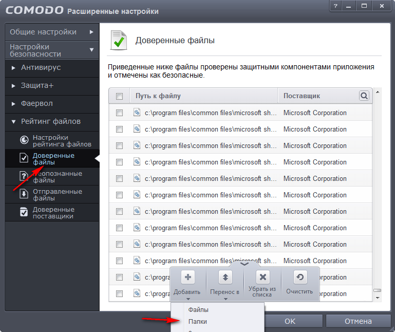 Через окно настройки CIS можно добавлять в «доверенные» не только файлы, но и все содержимое каталогов. Разумеется, добавлять файлы и каталоги в «доверенные» можно только при полной уверенности в их безопасности.