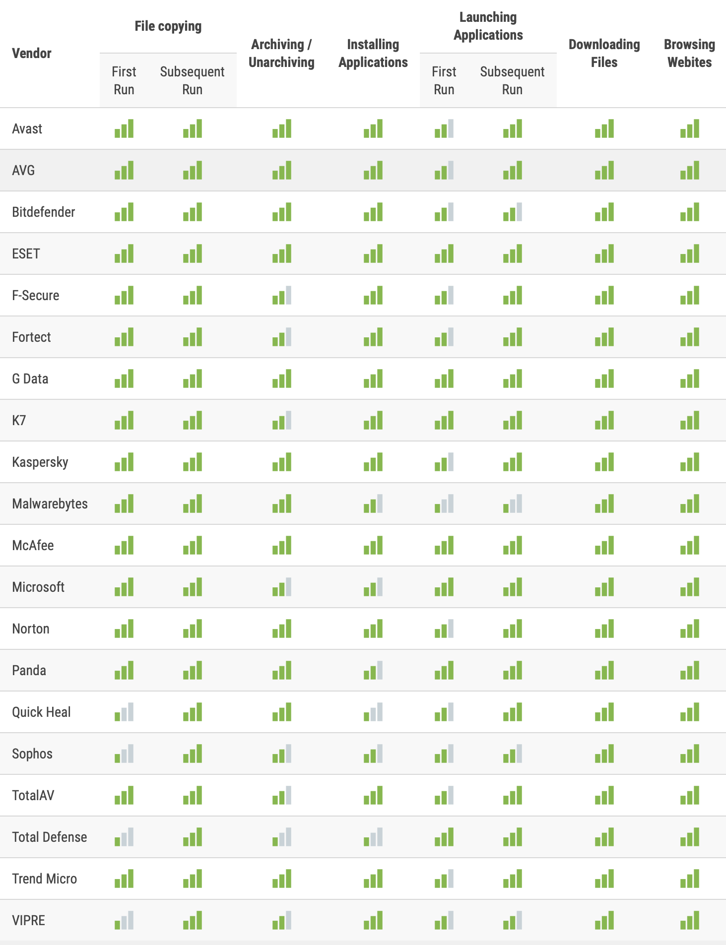 Отчёт Performance Test оценивает исключительно влияние антивирусов на быстродействие системы и не отражает уровень защиты от угроз. Для комплексного выбора рекомендуется дополнительно ознакомиться с результатами тестирования защиты от интернет-угроз и вредоносных программ.