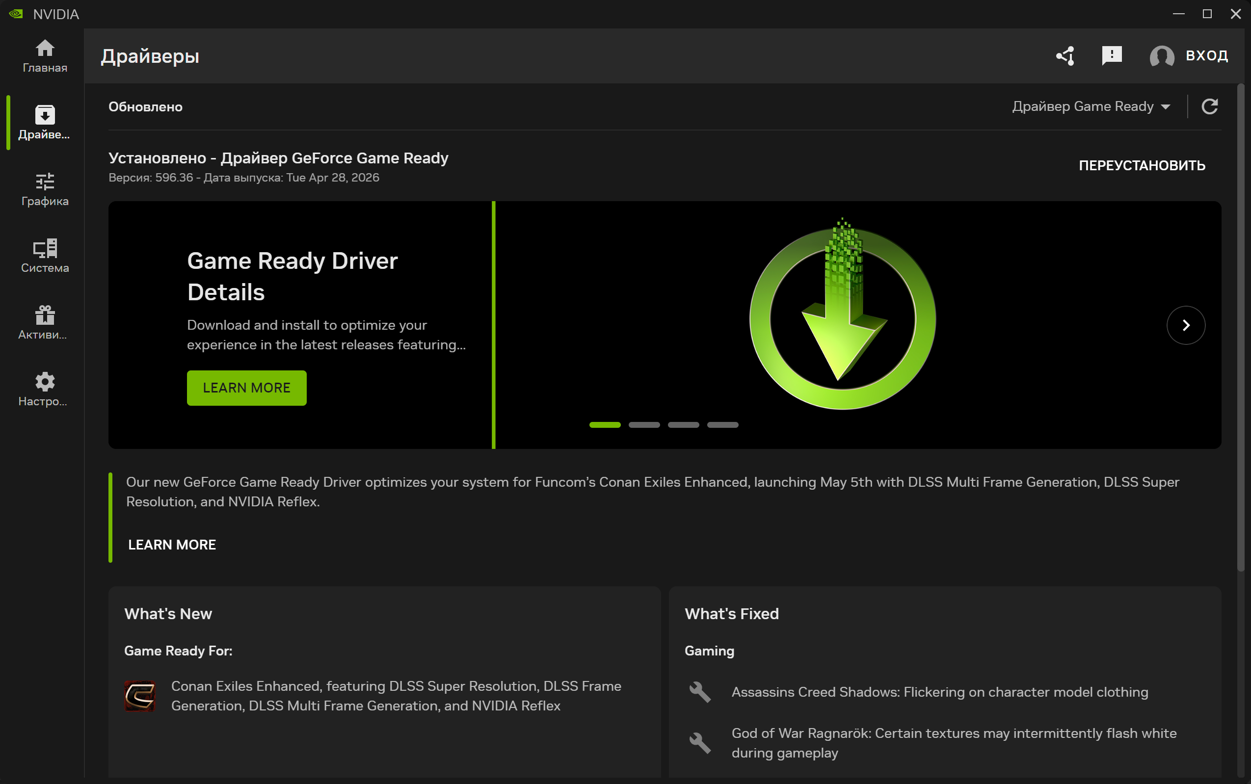 Обновление драйвера NVIDIA GeForce Game Ready 596.36 WHQL доступно для скачивания через Приложение NVIDIA, GeForce Experience или с официального сайта GeForce.com. Новая версия включает оптимизации для новых игр и исправления ошибок.
