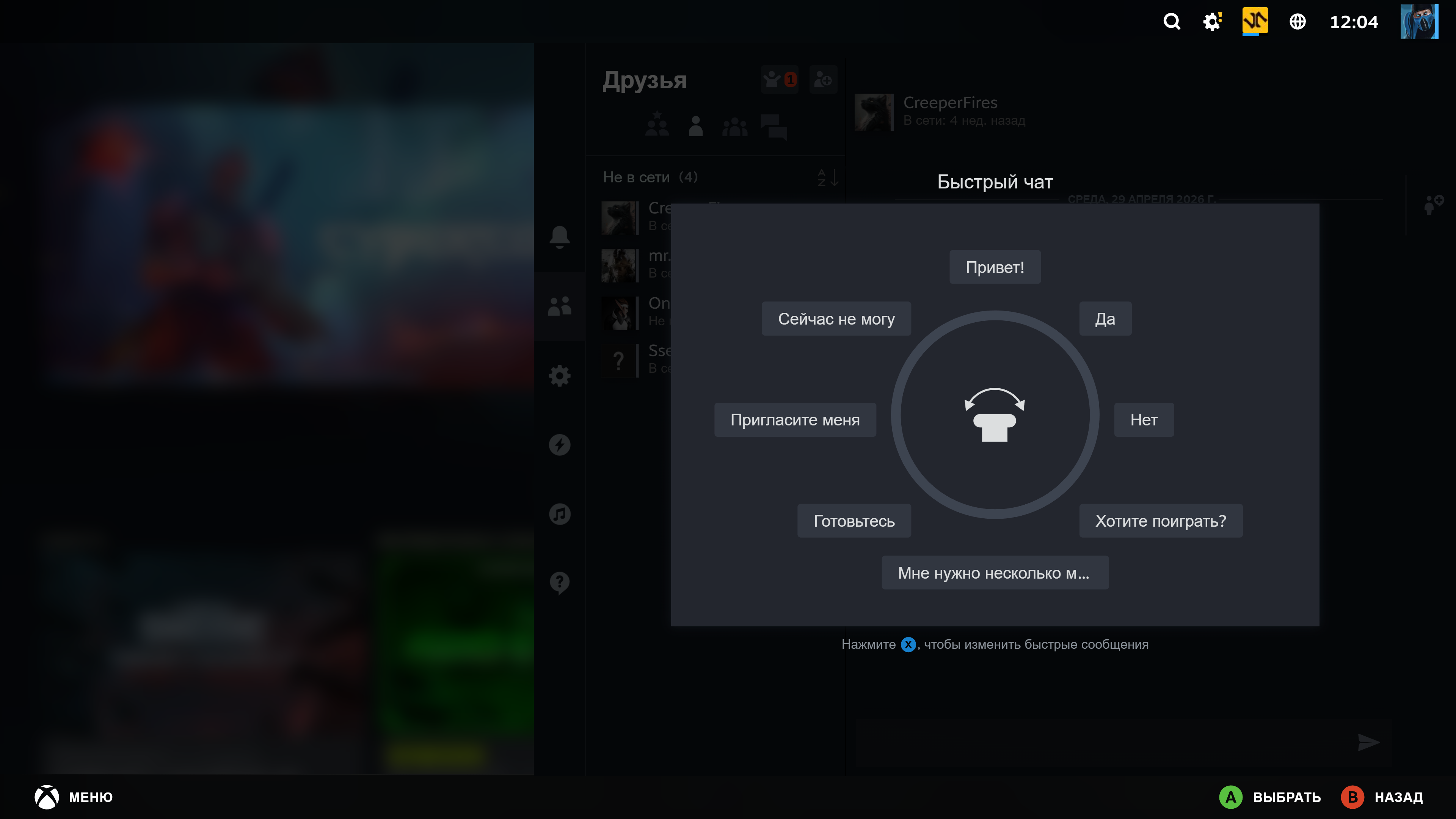 Индикатор заряда и быстрые сообщения в режиме Big Picture