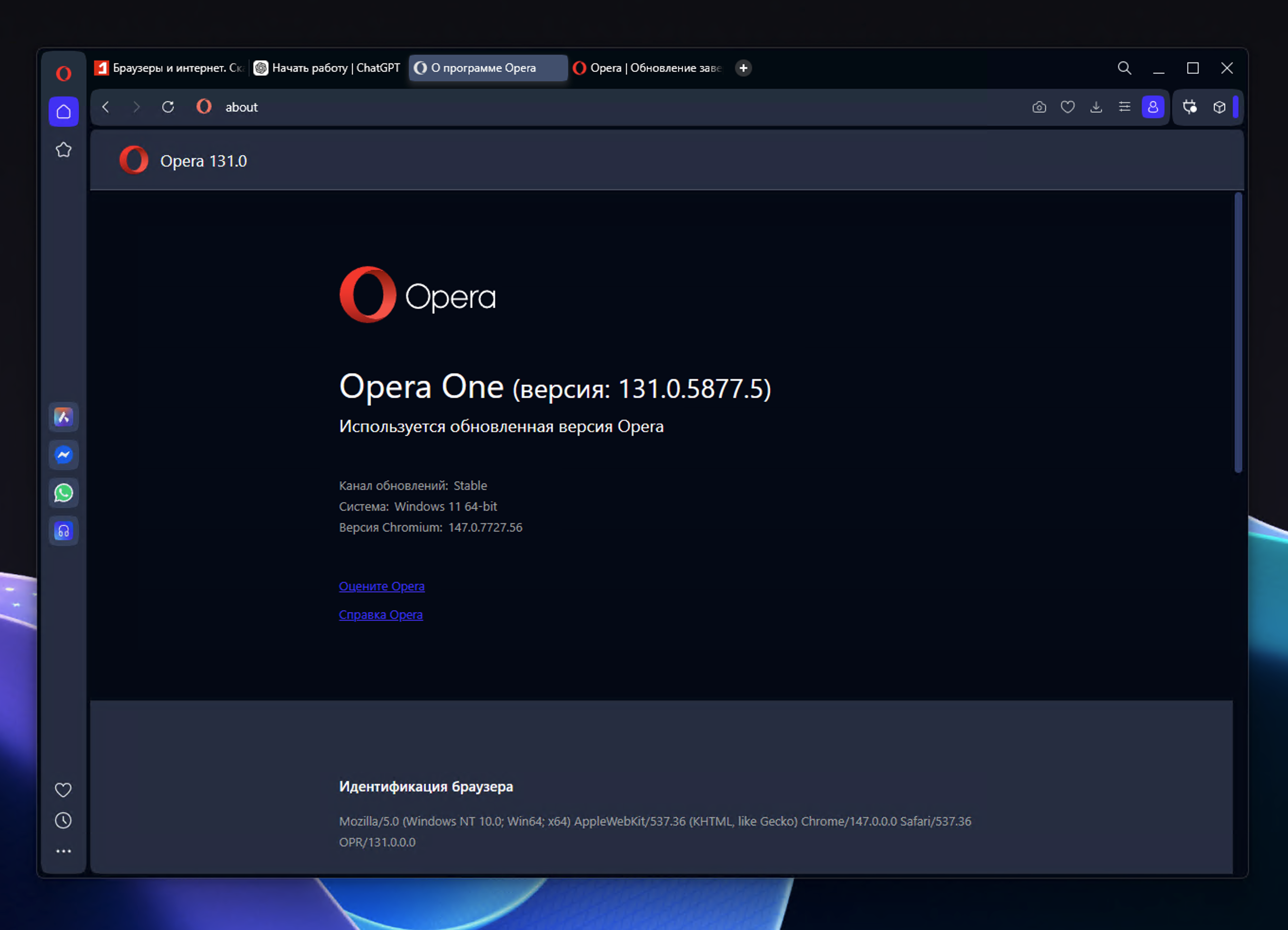 Opera 131 работает на основе Chromium 147.0.7727.56. Новый движок приносит регулярные исправления безопасности, улучшает совместимость с современными веб-стандартами и повышает стабильность работы.
