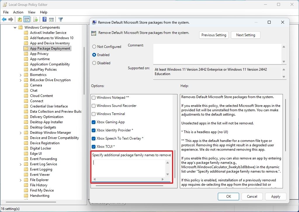 Начиная со сборки 29570 в канале Canary, Microsoft обновила эту политику, добавив опцию динамического списка. Она позволяет администраторам удалять дополнительные программы форматов MSIX и APPX.