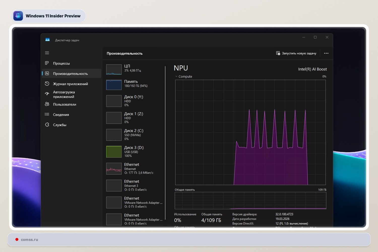 NPU в Диспетчере задач