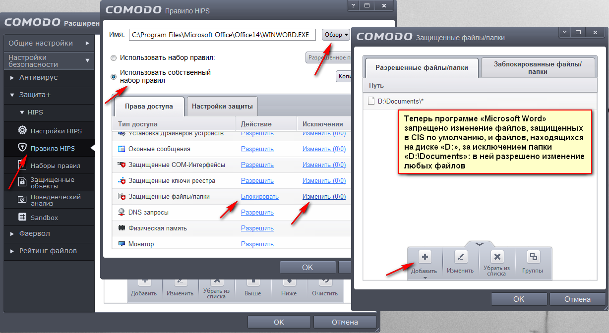- Особенности применения правил HIPS к приложениям