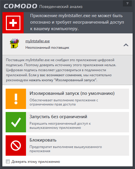 - производится попытка запустить некое приложение, не являющееся «доверенным»;