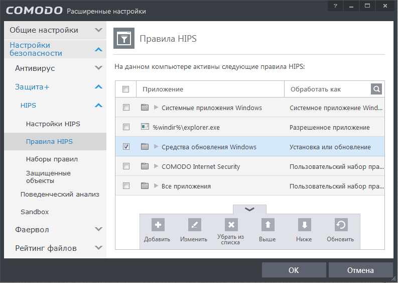 Особенности применения правил HIPS к приложениям