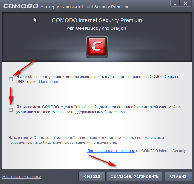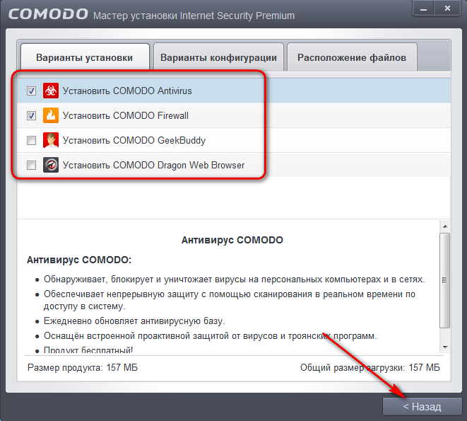 При установке CIS нужно обратить внимание на ее опции. Необходимые для работы компоненты — «Comodo Firewall» и/или «Comodo Antivirus». При выборе любого из них будут установлены также средства проактивной защиты. Рассмотрим остальные опции.