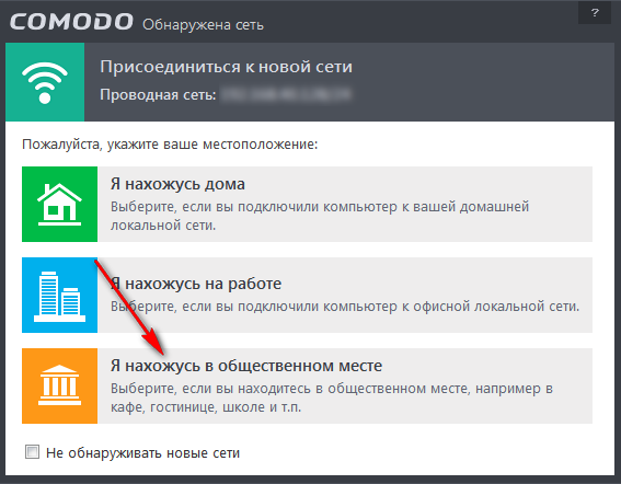 После применения конфигурации «Proactive Security» появится оповещение о перезагрузке — пока отложим ее. Также появится оповещение для выбора статуса сети. Если сеть нужна только для доступа к интернету, отмечаем ее как общественную.
