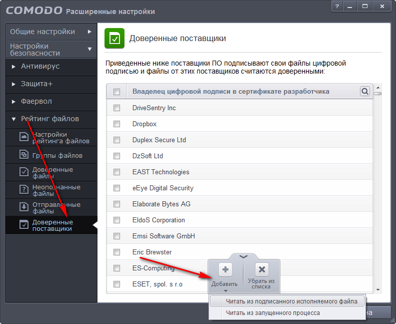 Отмечу следующую особенность. Если какой-либо файл был автоматически занесен в список доверенных на основании доверия к его поставщику, то при исключении поставщика из доверенных будет исключен и файл. Однако если файл был занесен в доверенные вручную или в результате работы установщика — он останется доверенным даже после исключения его поставщика.