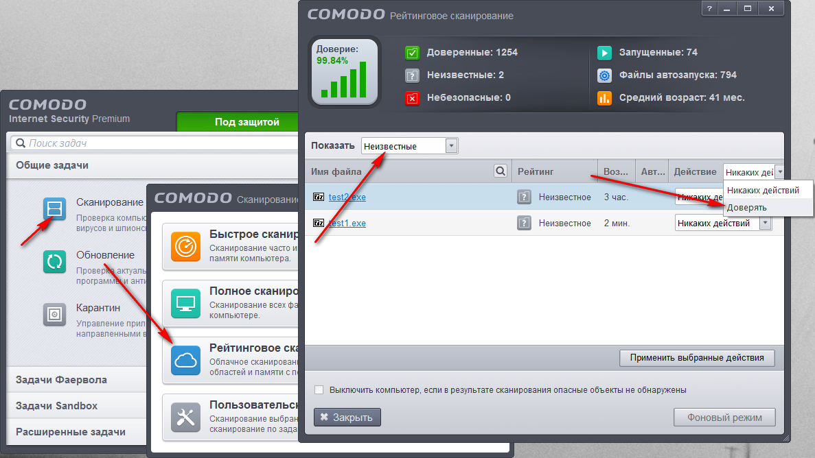 Если файлы, попавшие в число неопознанных, гарантированно безопасны, то их можно вручную перевести в доверенные.