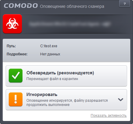 При попытке запуска файла производится облачная проверка его рейтинга и, если выявится рейтинг «вредоносный», этот файл будет заблокирован и удален в карантин (в конфигурации «Proactive Security»). Поведение CIS при обнаружении файлов таким с рейтингом может быть изменено.