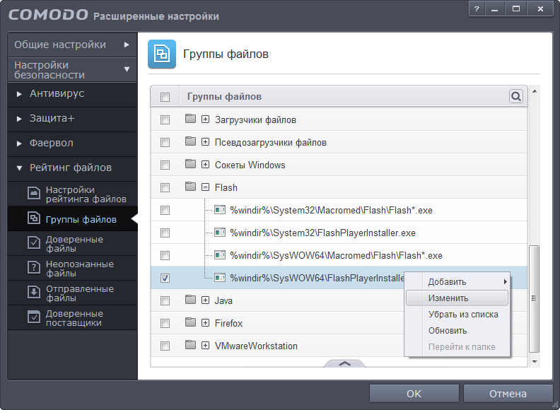 В версии CIS 8 вкладка управления группами файлов помещена в раздел «Рейтинг файлов» и добавлено несколько новых предустановленных групп.