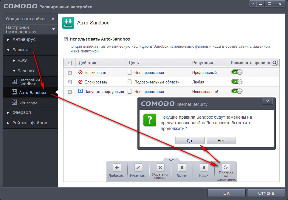В действительности, чтобы предотвратить удаление файлов в карантин, следует изменить (не отключить!) правило Auto-Sandbox для приложений с репутацией «вредоносные»: убрать в нем соответствующую опцию. Подробный разбор Auto-Sandbox будет в другой статье.