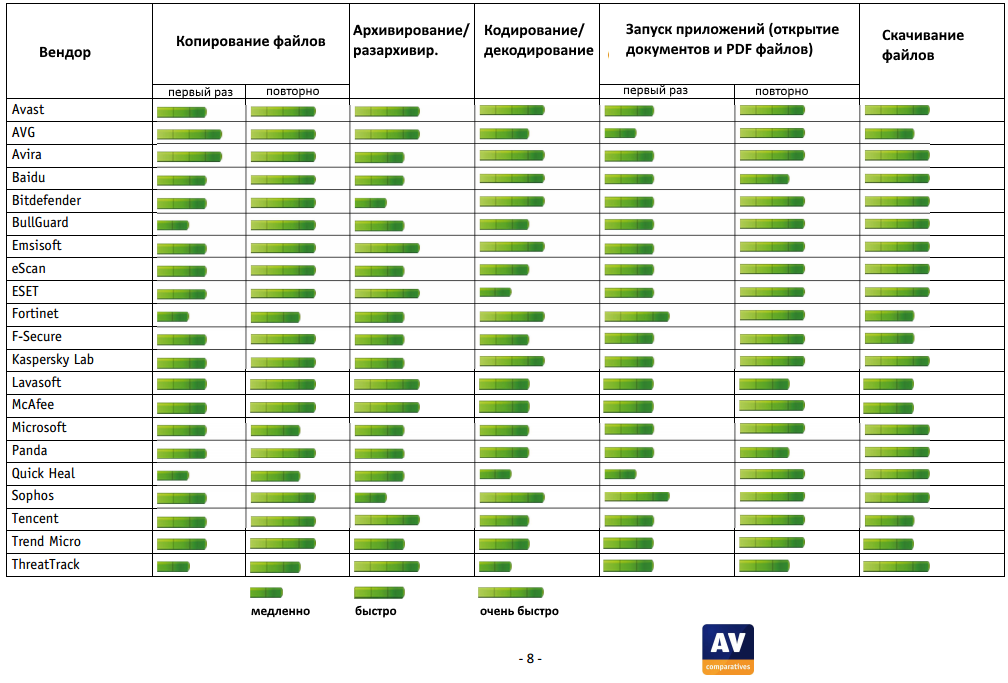 Оценка быстродействия AV-Comparatives