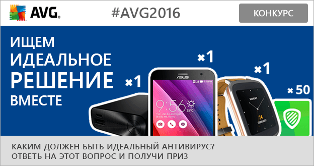 Мы выберем 50 лучших авторов, которые получат годовые лицензии AVG Internet Security 2016! Среди 50 победителей мы разыграем мощный смартфон ASUS Zenfone 2, умные часы ASUS ZenWatch и портативный аккумулятор ASUS ZenPower с емкостью 10050 мАч.