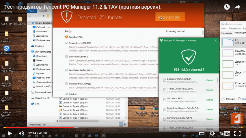 В тестировании принимала участие версия Tencent PC Manager 11.2.26152.901 и 11.2.26153.901 (TAV). TAV - версия антивируса без движка Bitdefender.
