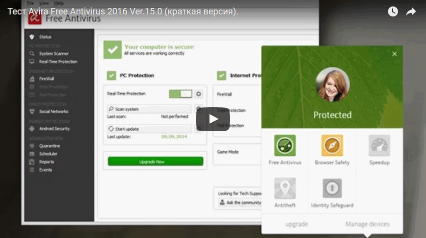 В тестировании принимала участие версия Avira Free Antivirus 15.0.16.282.
