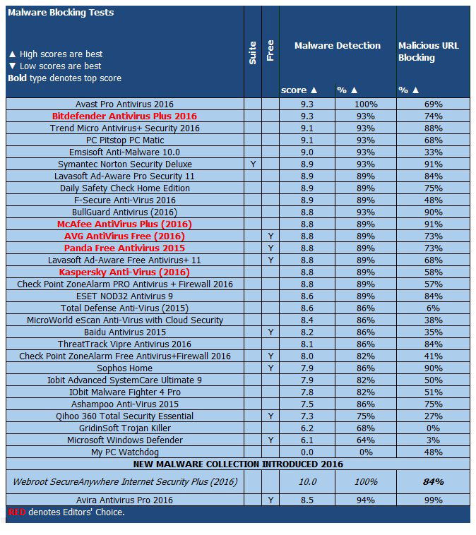 Webroot оказался очень эффективным средством защиты от мошеннических угроз, которые пытаются украсть конфиденциальные пользовательские данные. В качестве условного лидера для сравнения в данном тесте применяется Norton Security Premium - данный продукт стабильно показывает высокие результаты при противодействии фишингу. Webroot и Bitdefender Internet Security 2016 являются единственными антивирусными решениями, которые смогли превзойти Norton.
