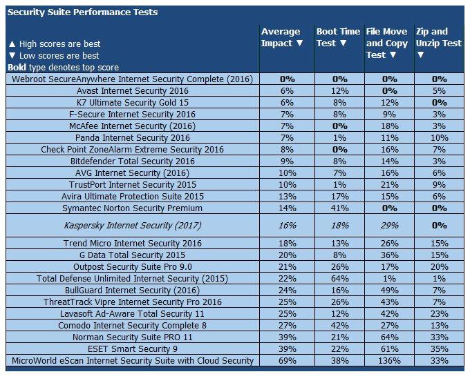 Так как Kaspersky Internet Security содержит огромное количество функций, существует вероятность, что он окажет заметное влияние на производительность. В собственных тестах PCMag было зафиксировано небольшое воздействие, но никаких серьезных проблем не наблюдалось. Стоить отметить, что AV-Test и AV-Comparatives присваивают Kaspersky максимальные баллы за производительность.
