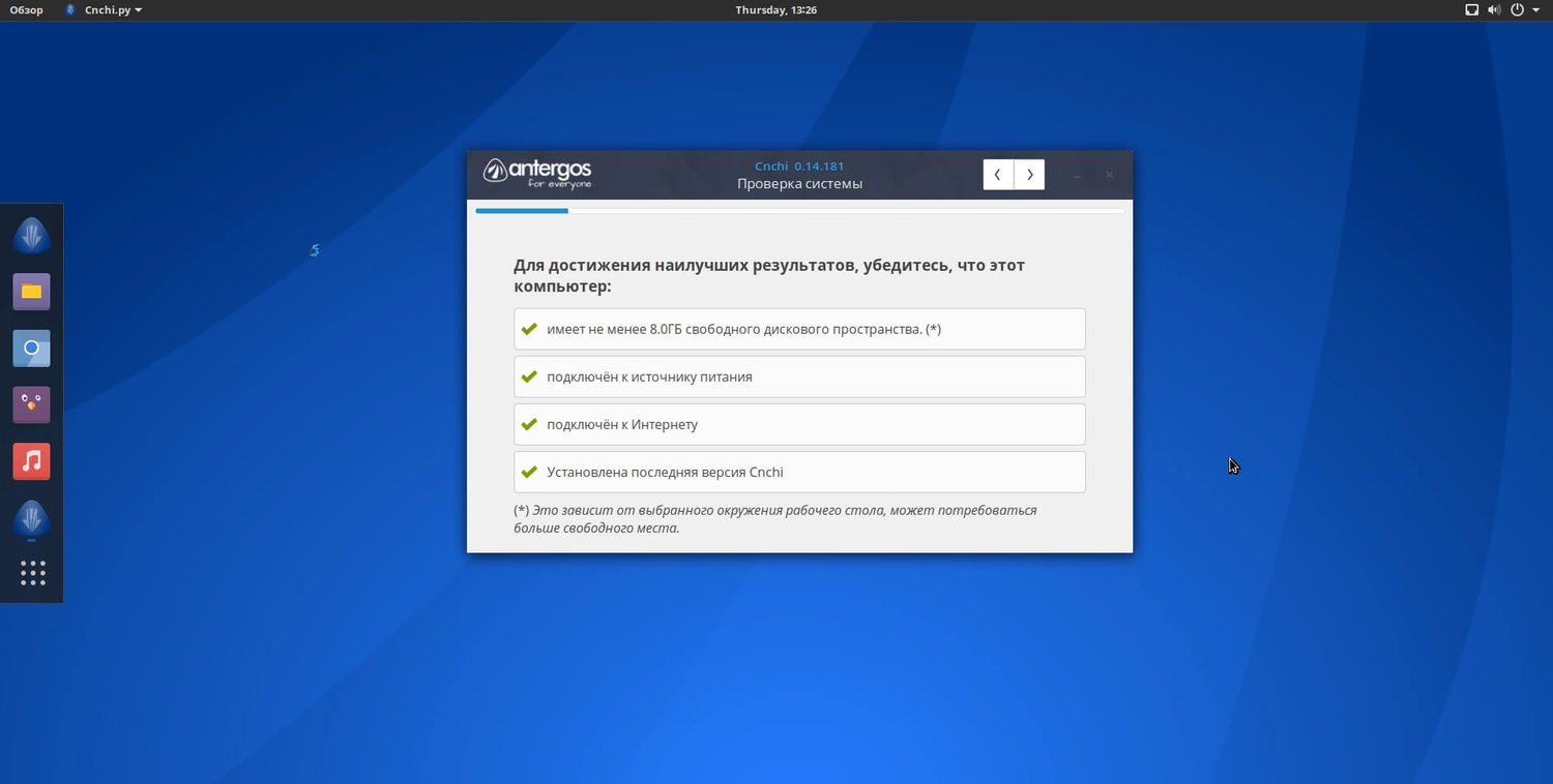4. На данном этапе установщик проверят минимальные системные требования, которые показаны на скриншоте. Стоит отметить, что наличие подключения к интернету является обязательным, т.к установочный файл скачает нужное нам окружения и выбранные программы.