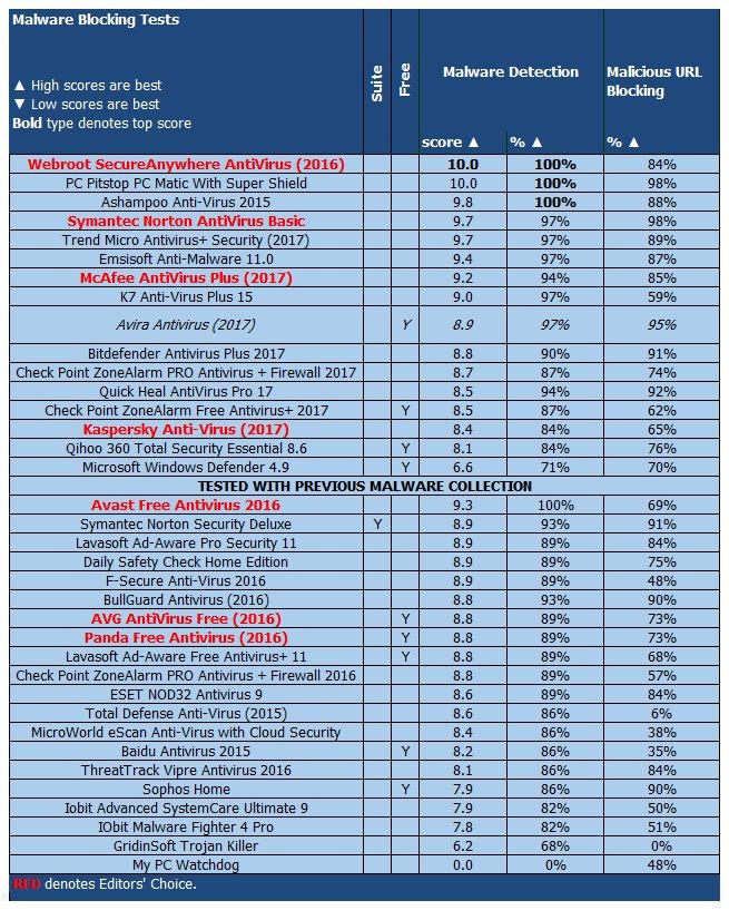В комплексном испытании AV-Test Avira получила по 5,5 баллов за защиту и производительность и 6 баллов за удобство использования - в сумме 17 баллов. Для сравнения Bitdefender Antivirus Plus 2017, Kaspersky Anti-Virus и Trend Micro Antivirus+ Security смогли набрать максимальные 18 баллов.