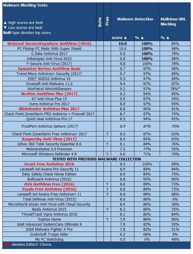 Лучшие антивирусы, в частности Kaspersky Anti-Virus и Bitdefender получают наивысшие оценки от лабораторий. Если простые результаты любительских тестов PCMag не совпадают с показателями лабораторий, то приоритет отдается лабораторным данным.