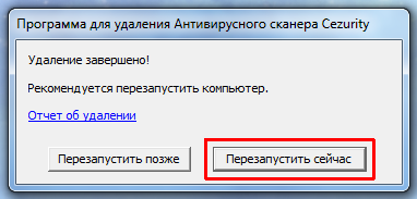 Дождитесь, пока утилита не удалит все следы антивируса Cezurity из системы: