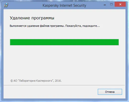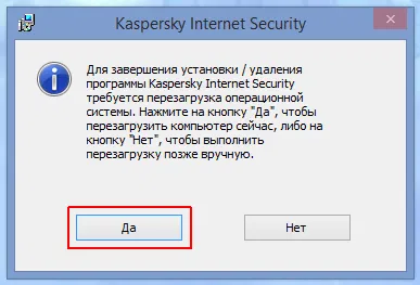 Перезагрузите компьютер. После перезагрузки, все программы Лаборатории Касперского будут удалены.