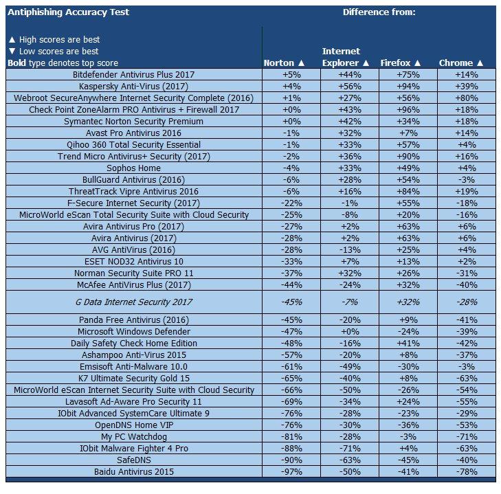 G Data заблокировал 78 процентов вредоносных ссылок, причем большинство из них за счет предотвращения доступа на сетевом уровне. Лидером в тесте остается Norton с 98% обнаруженных онлайн угроз.