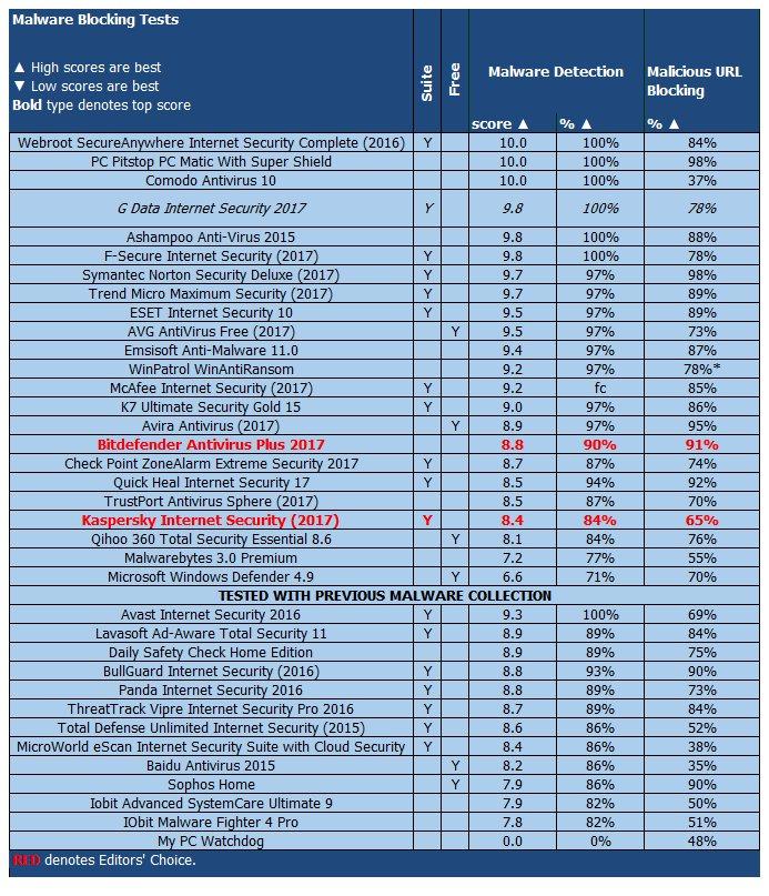 PCMag различает комплексные антивирусы начально уровня, такие как G Data Internet Security, и полнофункциональные кроссплатформенные решения все-в-одном. В первой категории звание “Выбор редакции” разделяют Bitdefender Internet Security и Kaspersky Internet Security. Они стоят дороже G Data, но безупречно выполняют свою работу.