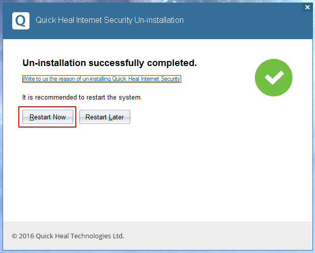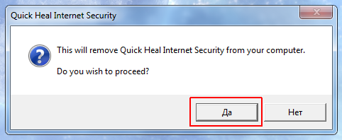 Примечание. Если вы не помните установленный пароль, то удаление Qiuck Heal стандартным способом будет невозможно. В этом случае, для удаления используйте утилиту удаления Quick Heal.