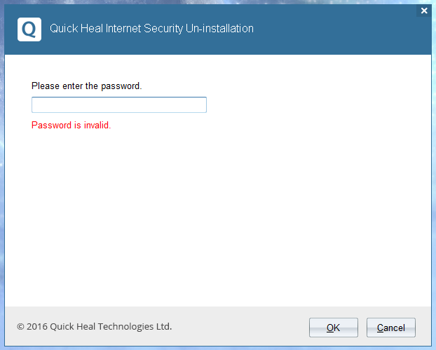 Если Quick Heal был защищён паролем, то для удаления антивируса потребуется ввести пароль: