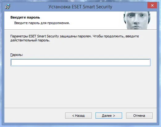 Если ESET NOD32 или ESET Smart Security защищён паролем, то появится запрос на ввод пароля: