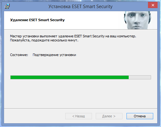 Дождитесь завершения удаления антивируса - это может занять несколько минут: