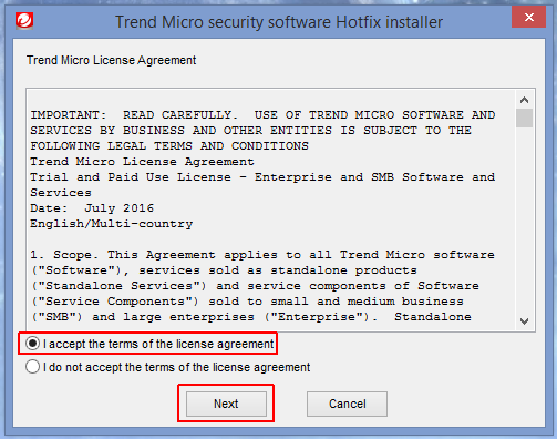 Запустите утилиту "Trend Micro Uninstall Tool" (файл Ti_110_win_en_Tool_UninstallTool_hfb0001.exe), отметьте пункт "I accept.." и нажмите "Next":