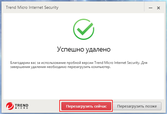 В большинстве версий антивируса Trend Micro, необходимо подтвердить удаление, нажав "Удалить" или "Uninstall":