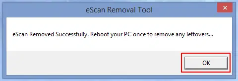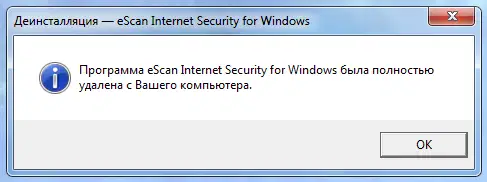 Дождавшись сообщения об успешном удаление eScan, закройте его и перезагрузите компьютер: