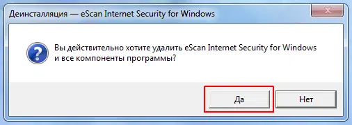Подтвердите удаление антивируса eScan:
